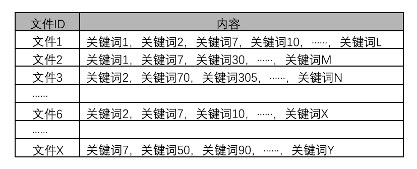 每個文件都對應一個文件ID,文件內容被表示為一串關鍵詞的集合。實際上,在搜索引擎索引庫中,關鍵詞也已經轉換為關鍵詞ID。這樣的數據結構就稱為正向索引。