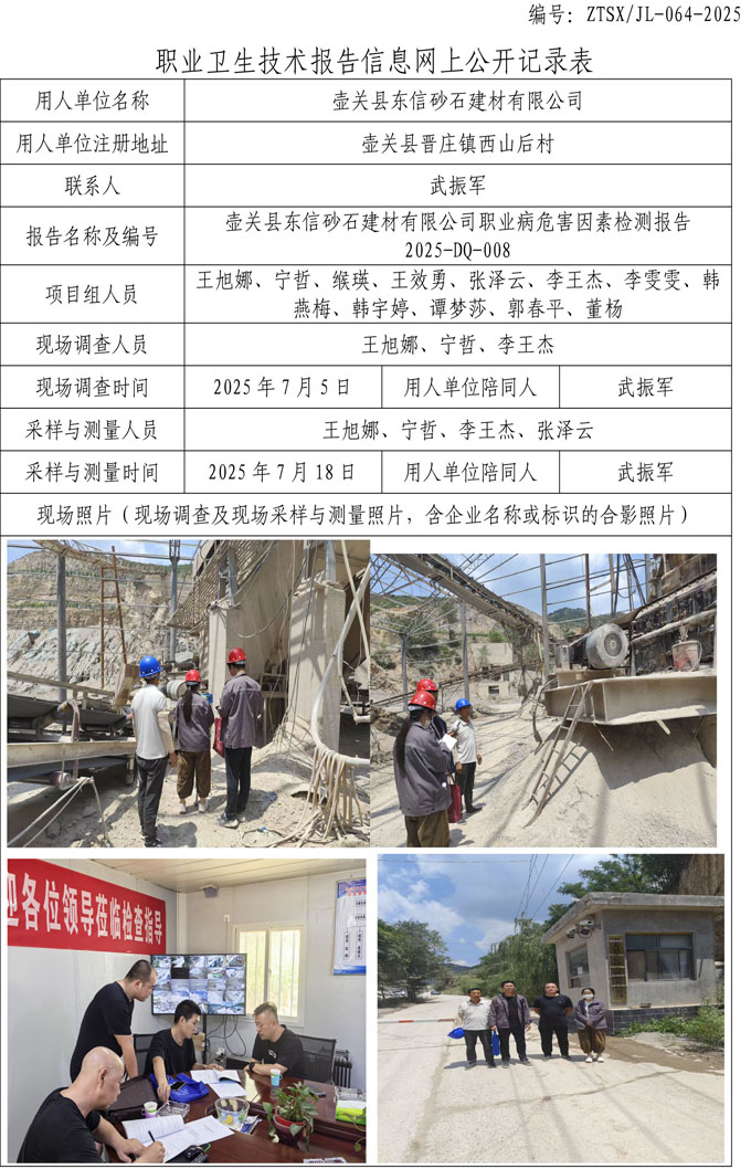 壺關(guān)縣東信砂石建材有限公司職業(yè)病危害因素檢測網(wǎng)上公開信息