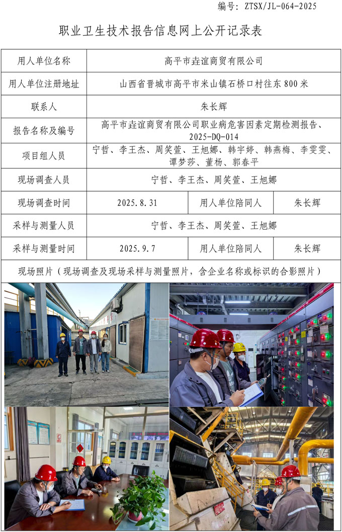 高平市垚誼商貿(mào)有限公司職業(yè)病危害因素定期檢測(cè)網(wǎng)上公開信息