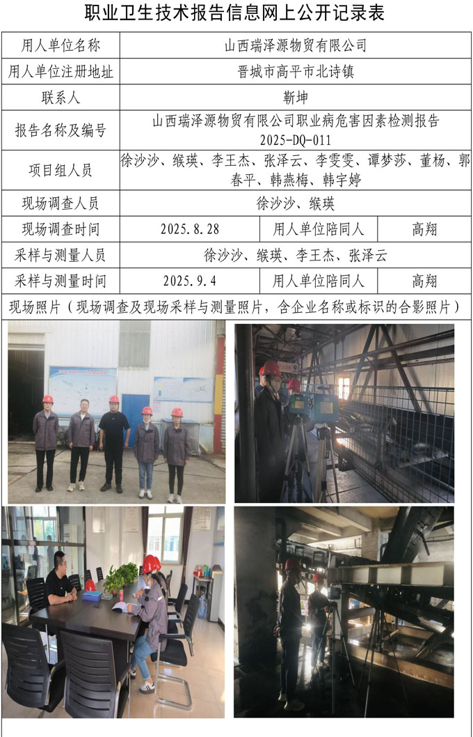 山西瑞澤源物貿(mào)有限公司職業(yè)病危害因素檢測網(wǎng)上公開信息